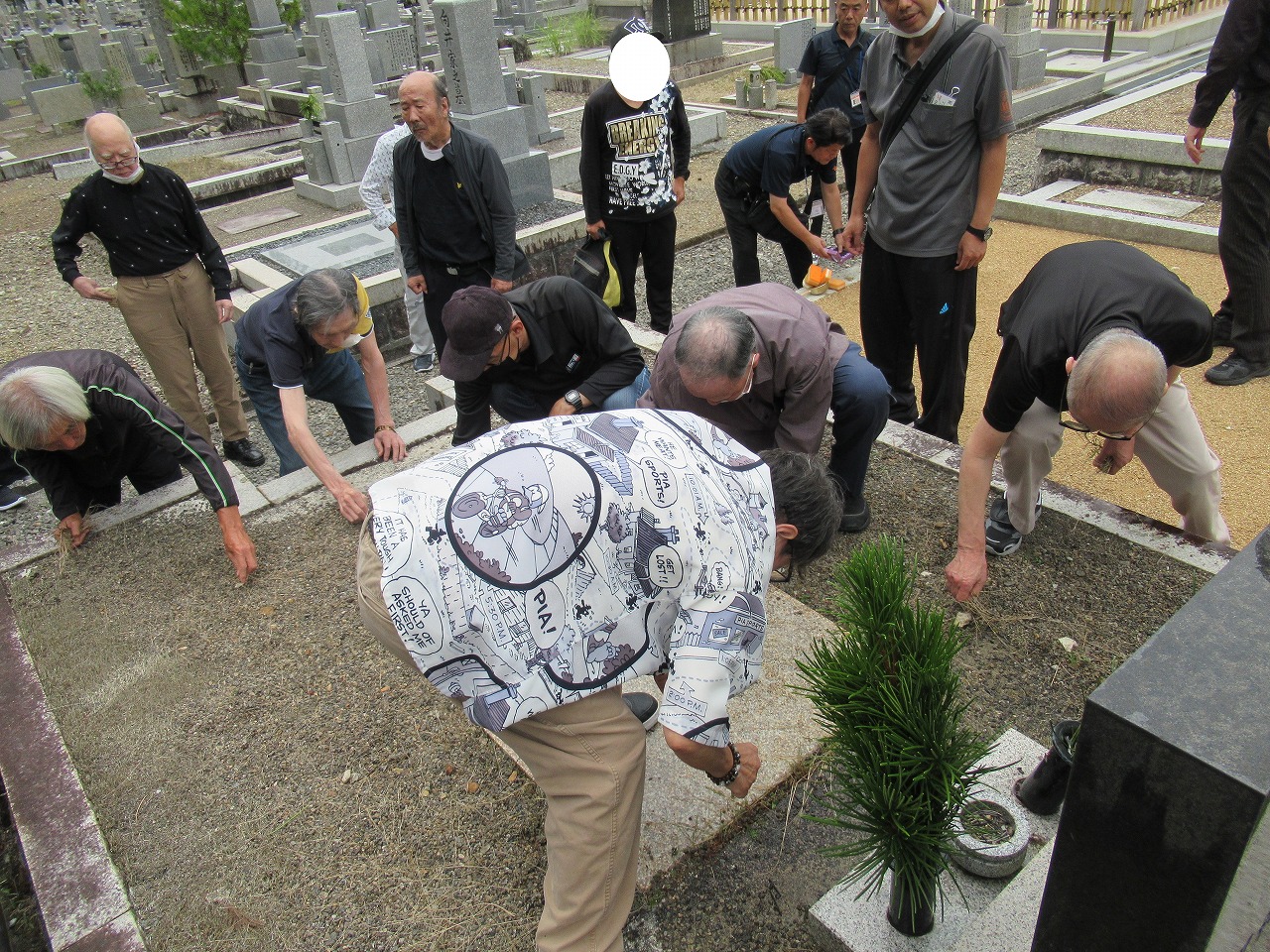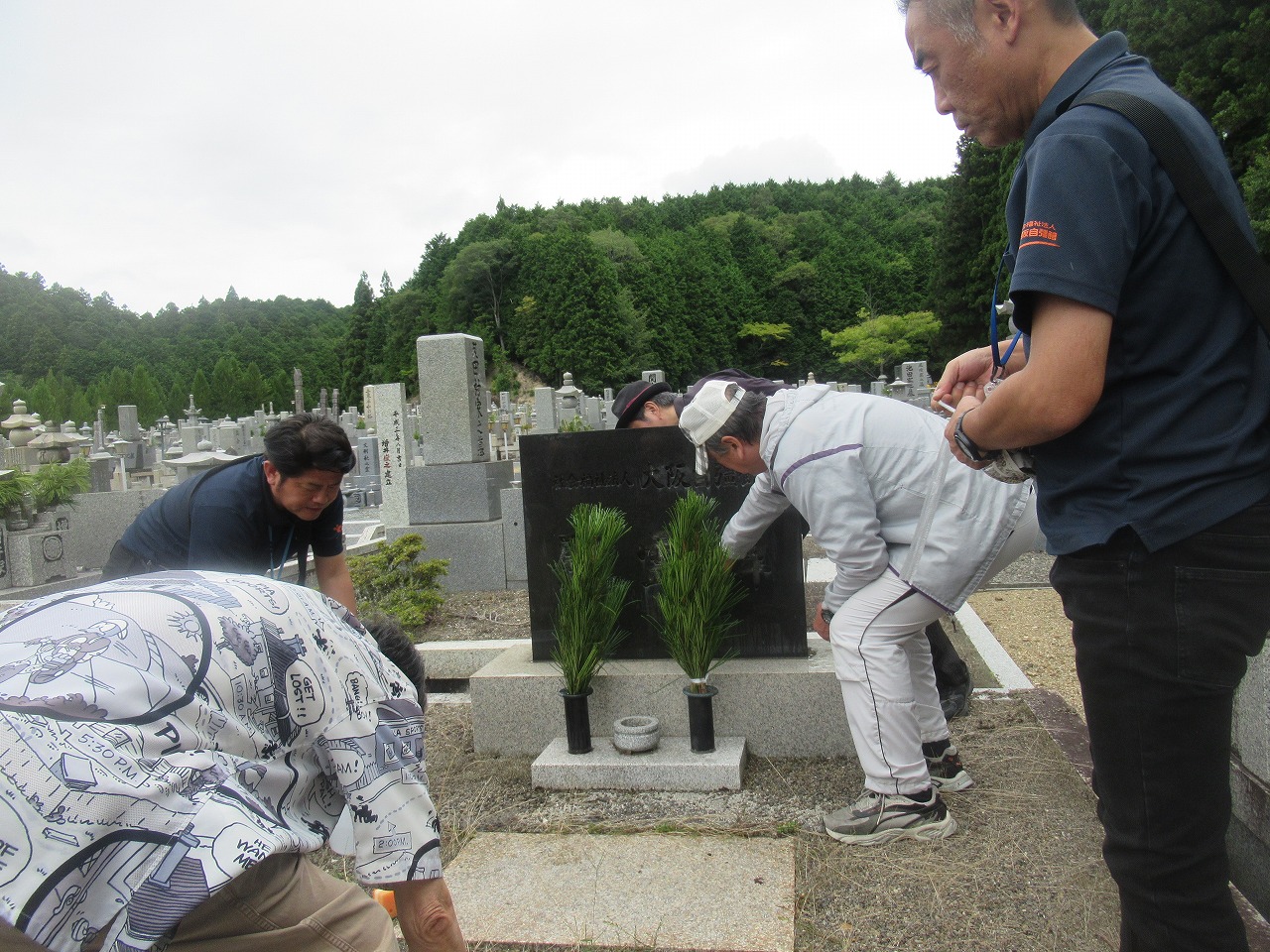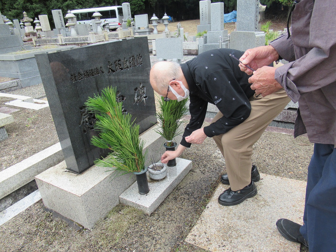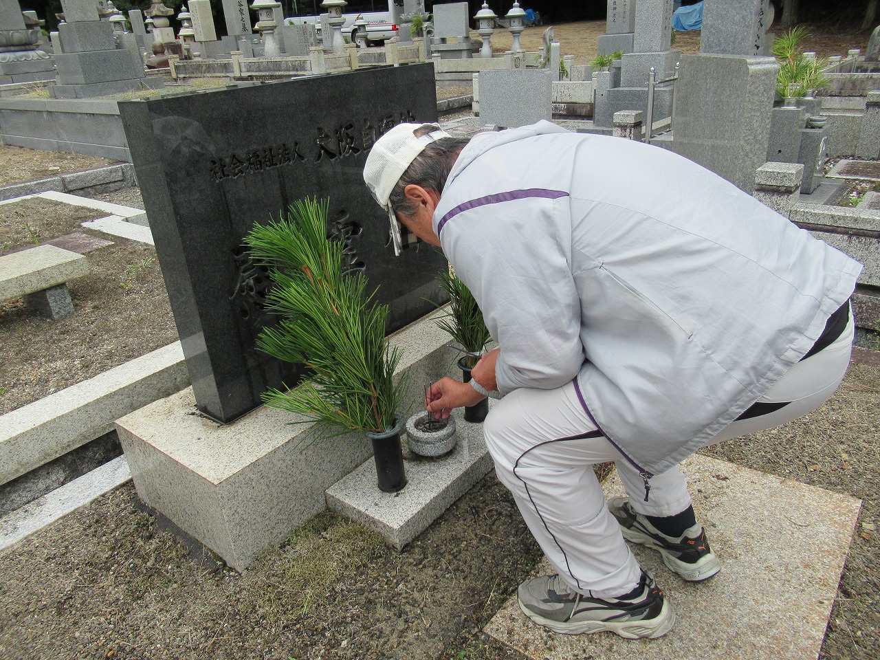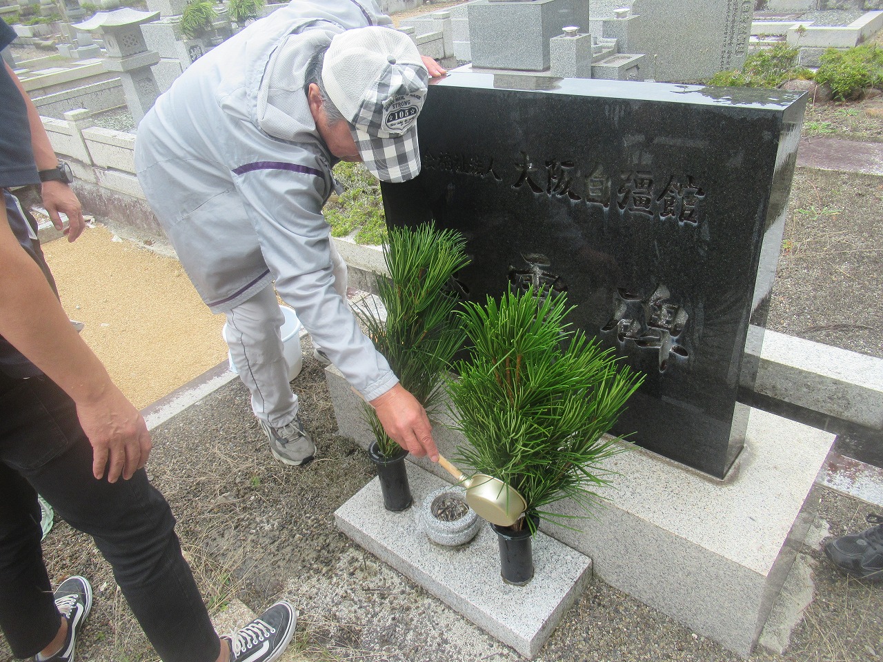皆さん積極的に掃除しており、心をこめて線香と高野槙を供えました。
