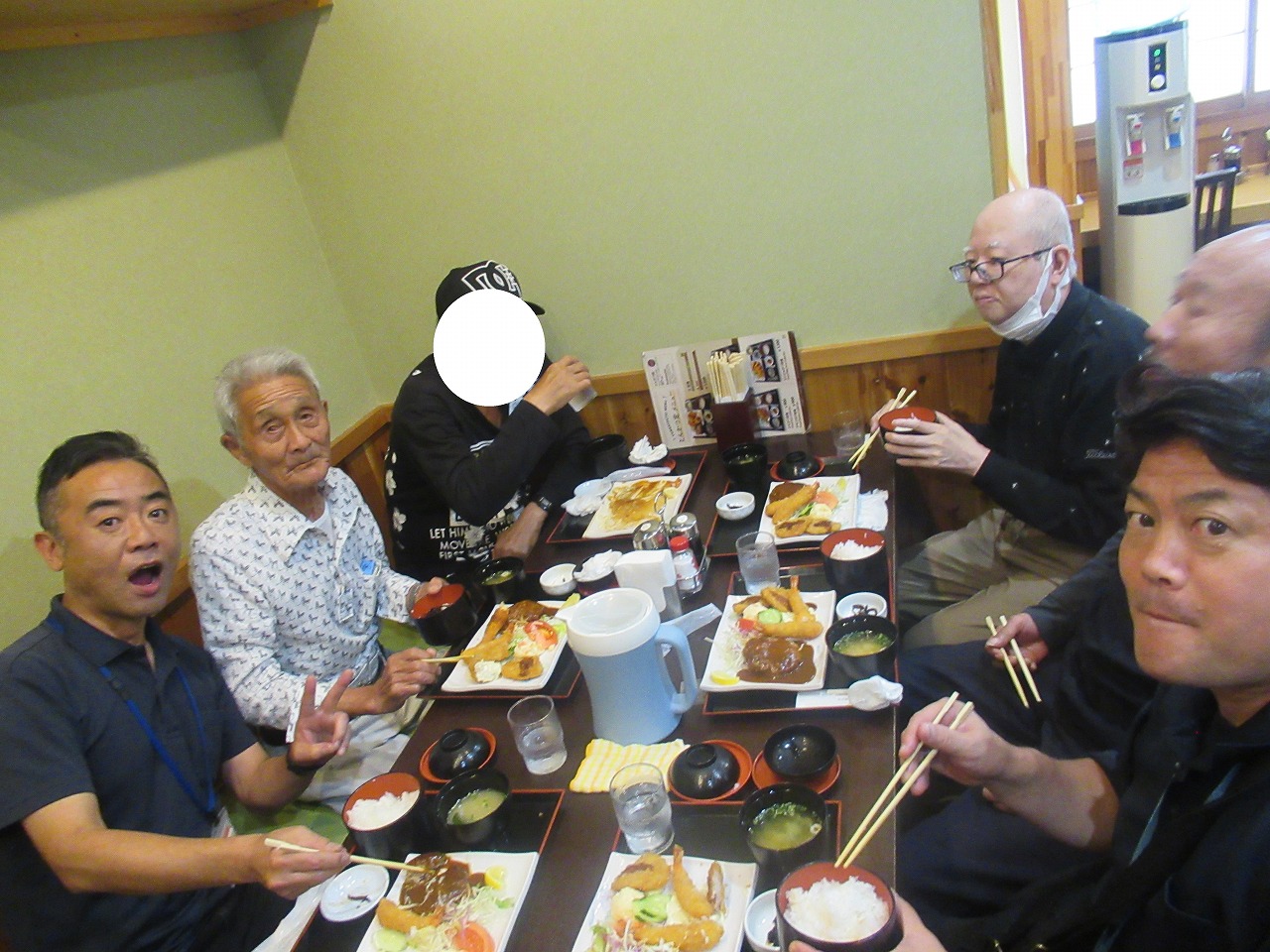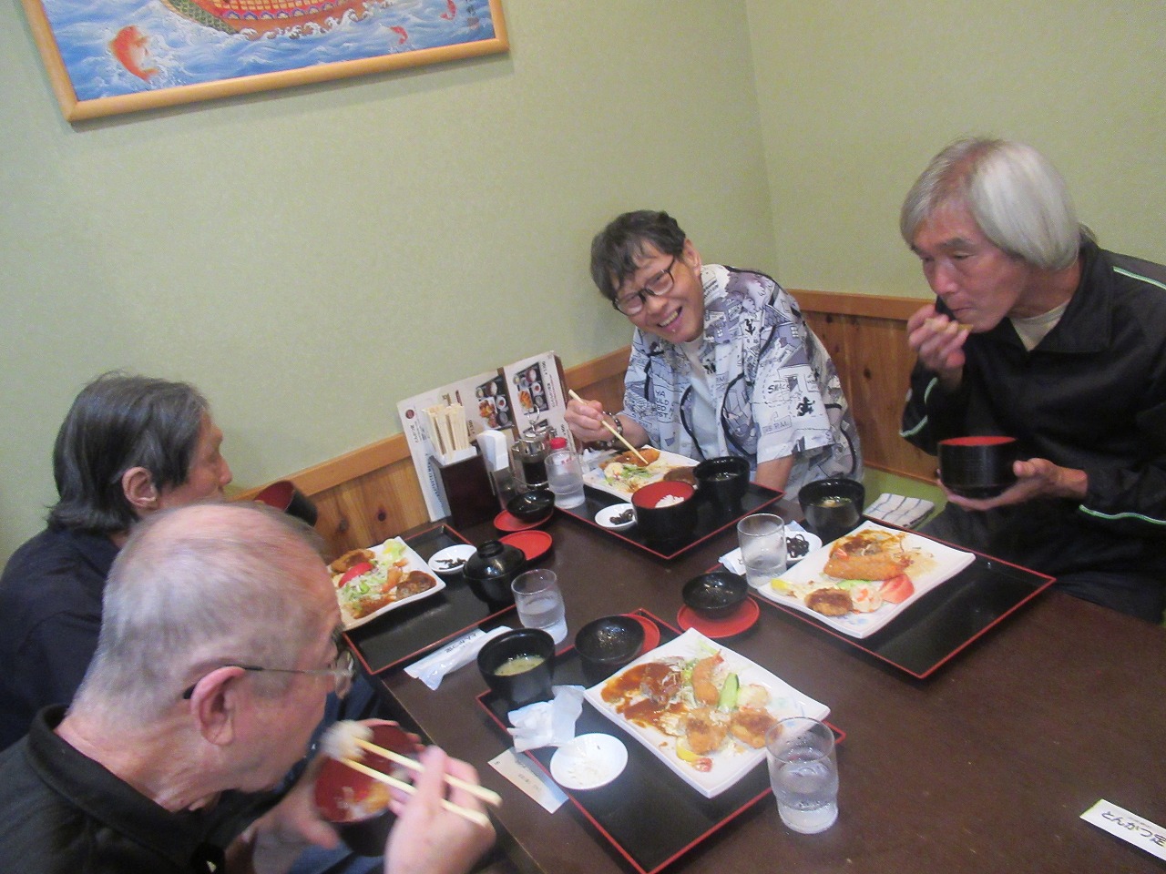 マイクロバスで向かい、墓参前にとんかつ屋さんで昼食を食べました。