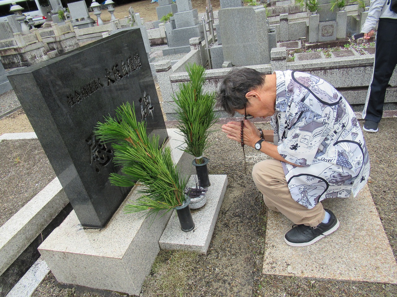 その後、大阪自彊館の慰霊碑の掃除と周辺の草むしりを行いました。