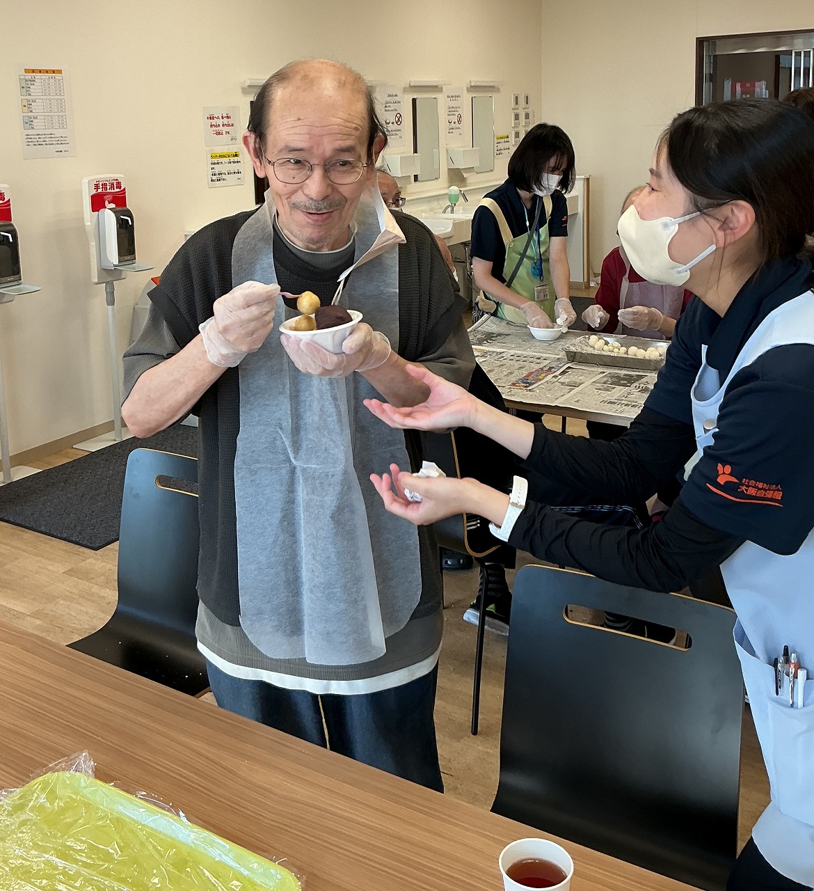 できた団子をお湯で茹で、その後盛り付けをしました。きな粉をかけたり、あんこを乗せたりなど皆さん色々なアレンジを楽しんでおられました。