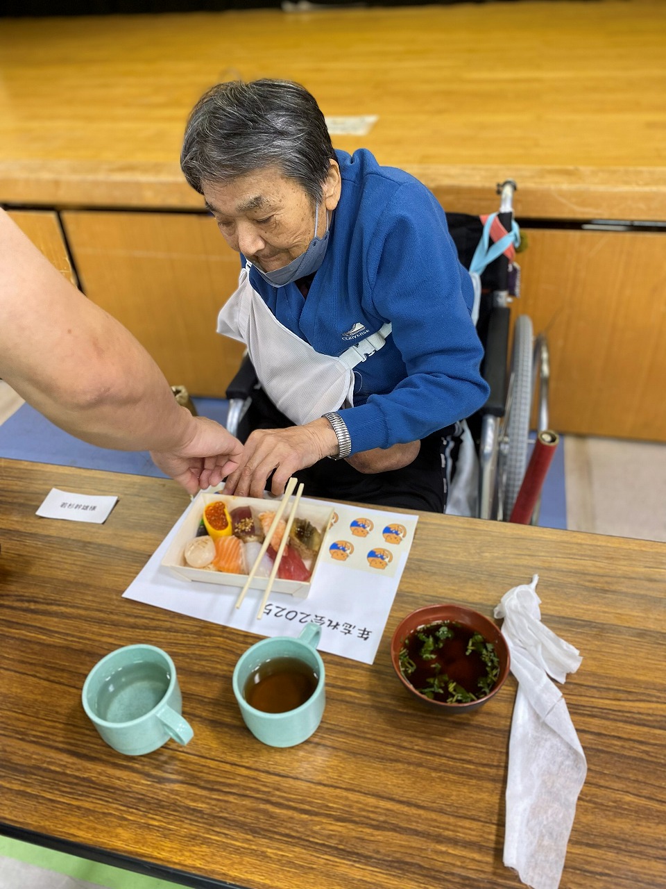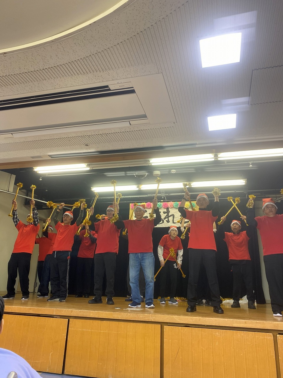 12/14(日)エフォールで年忘れ会を催しました。職員の演芸に豪華なお寿司や美味しいケーキ、抽選会と様々な内容に皆様の笑顔がたくさん見れました。今回は法人内の白雲寮からご利用者の方々が来られ、素敵な演芸も披露されて大盛り上がり。マツケンサンバやYMCAなど会場全体で楽しむことが出来ました。