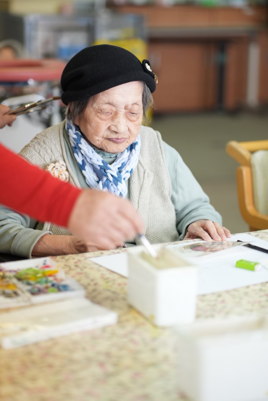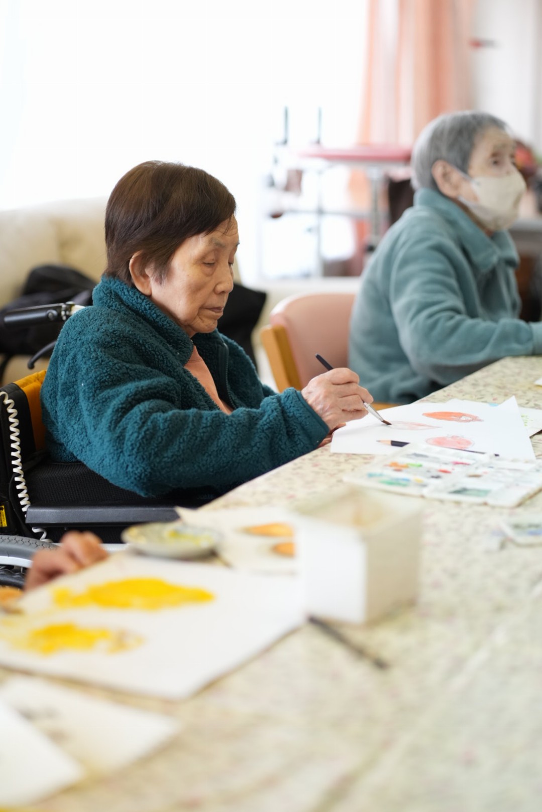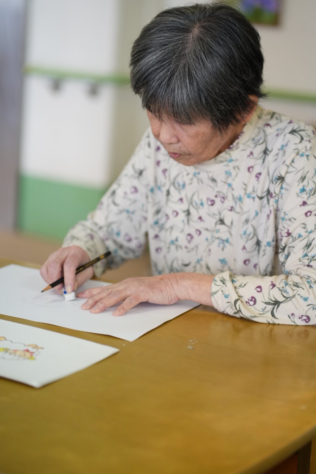 「ここはこの色やな」「綺麗に描けたわ」などお話しながら