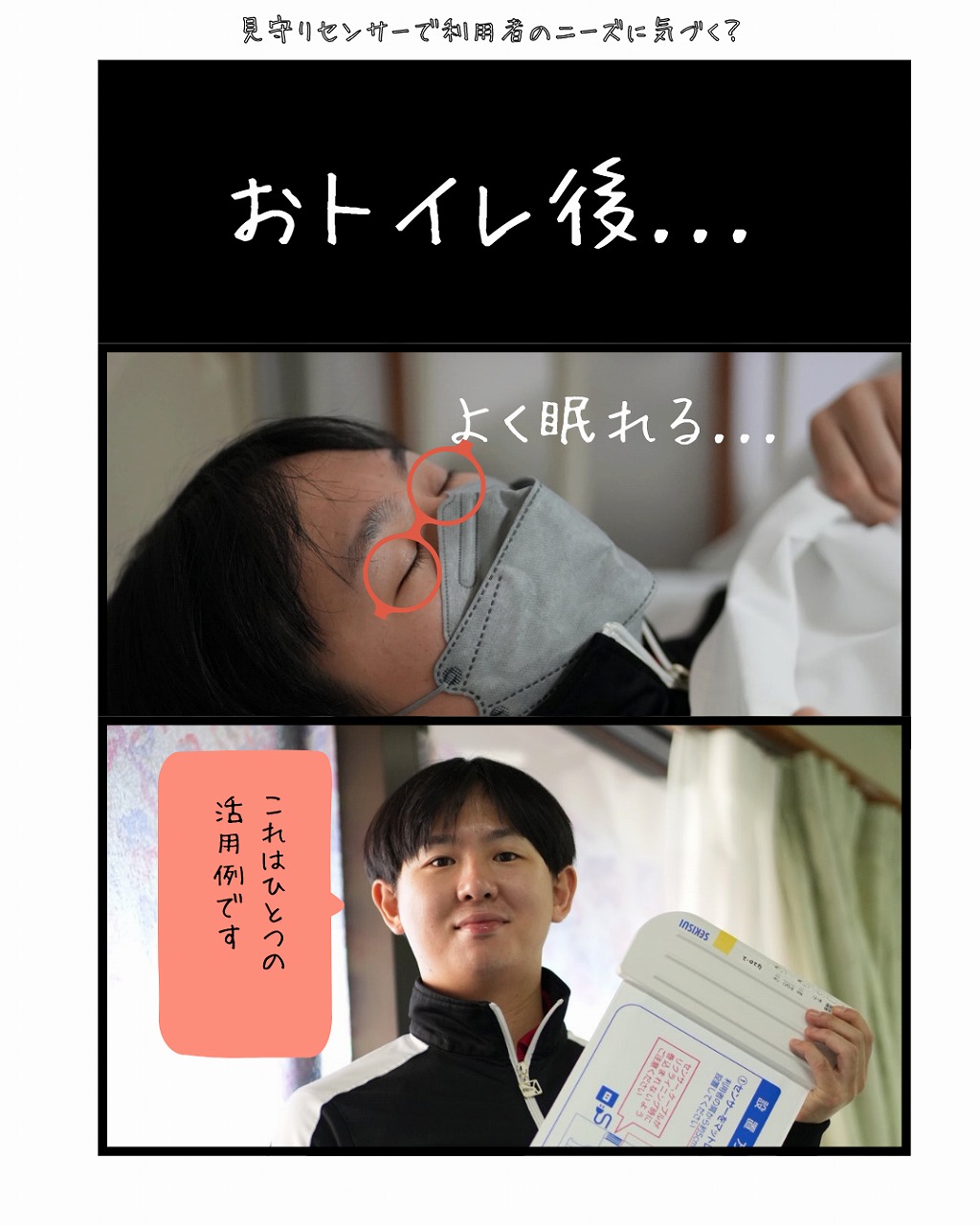今回導入したセンサーはマットレスの下に敷くタイプで、睡眠や呼吸の状況を感知することができます。