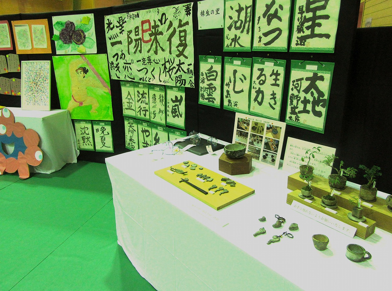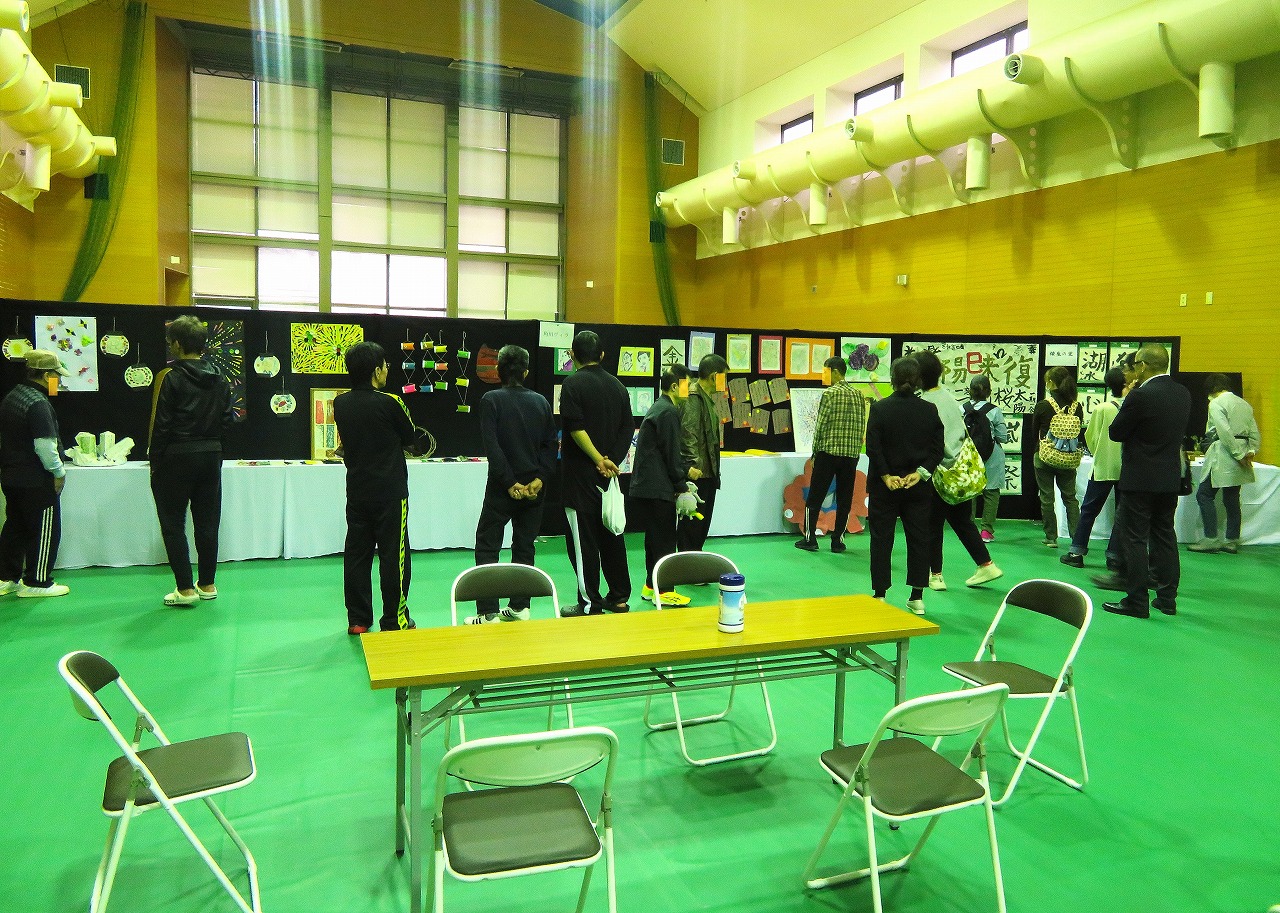 体育館の展示では橡生の里と角川ヴィラの利用者だけでなく、近隣施設の方々のアイデアいっぱいの