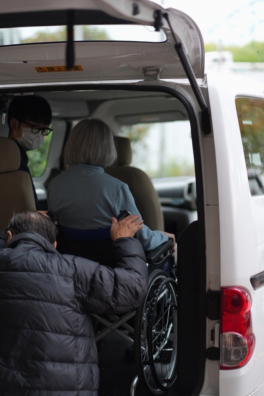 お花屋さんまで車に乗ってお出かけする前のご様子です。