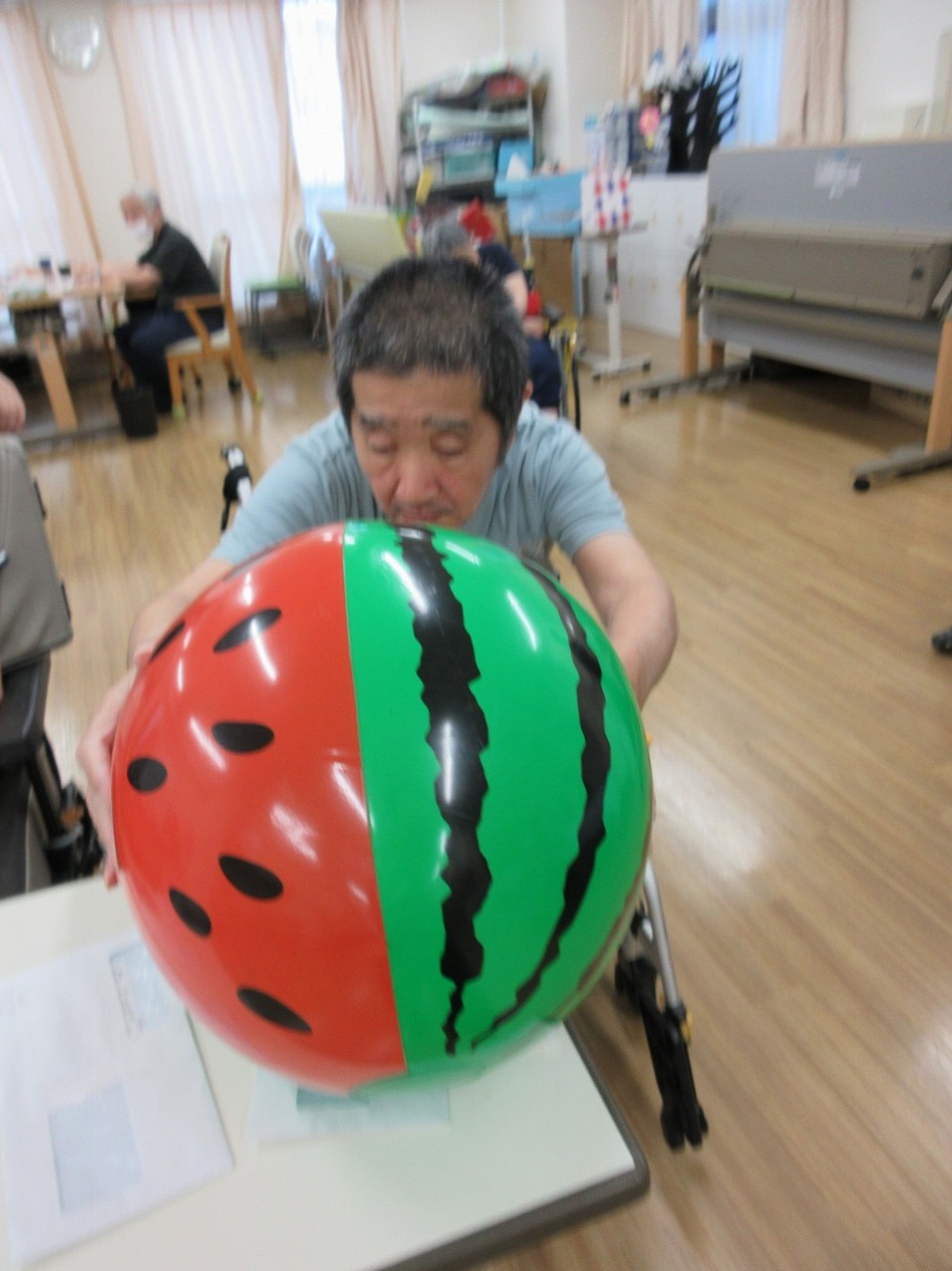 皆様、お題の「パンチングマシーン」や「スイカのビニールボール」などゴールまで持って来てくれました。