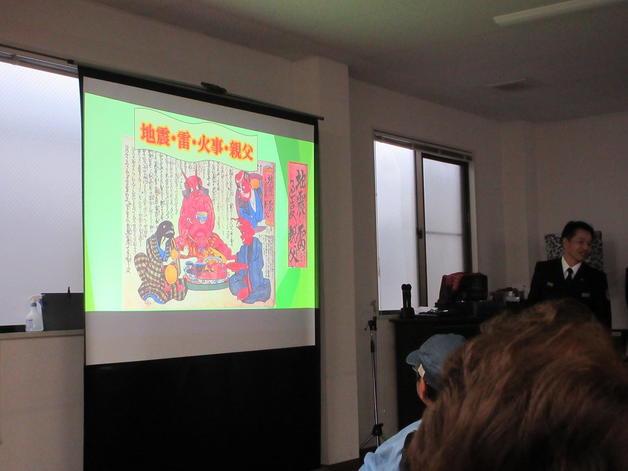 一度は聞いたことがある「地震・雷・火事・親父」の語源やそれぞれの災害の備えについて、わかりやすく解説していただきました。