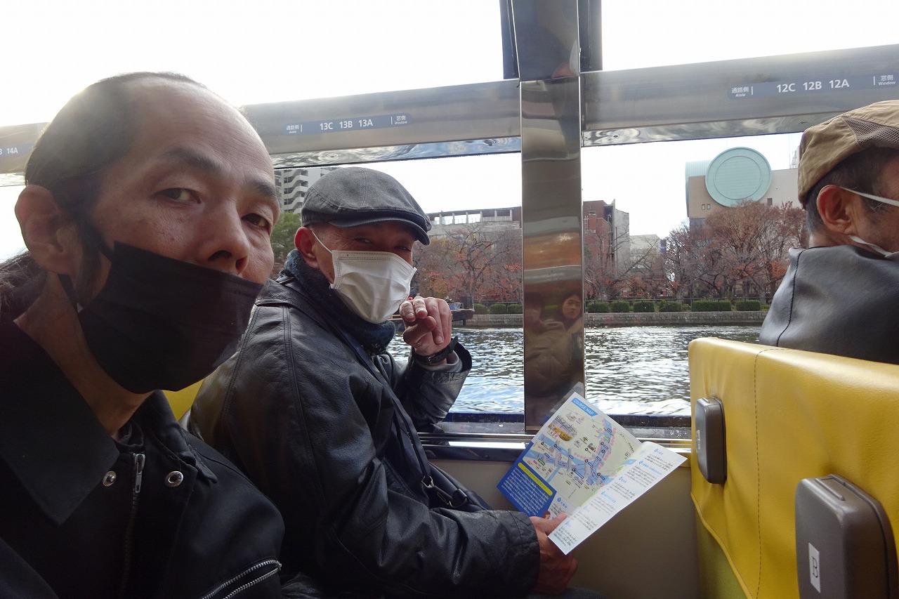水上バスアクアライナーに乗船し大阪城・中之島周辺を周遊クルージング。