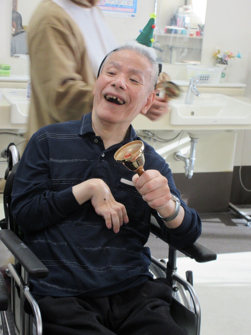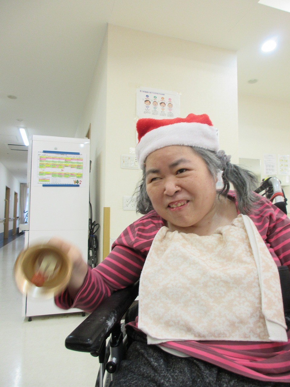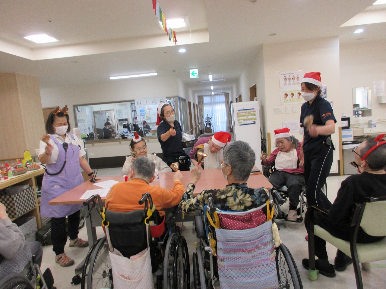 クリスマス当日は、クリスマスソングに合わせて、鈴を鳴らしたり、替え歌をしたり、楽しく歌いました。
