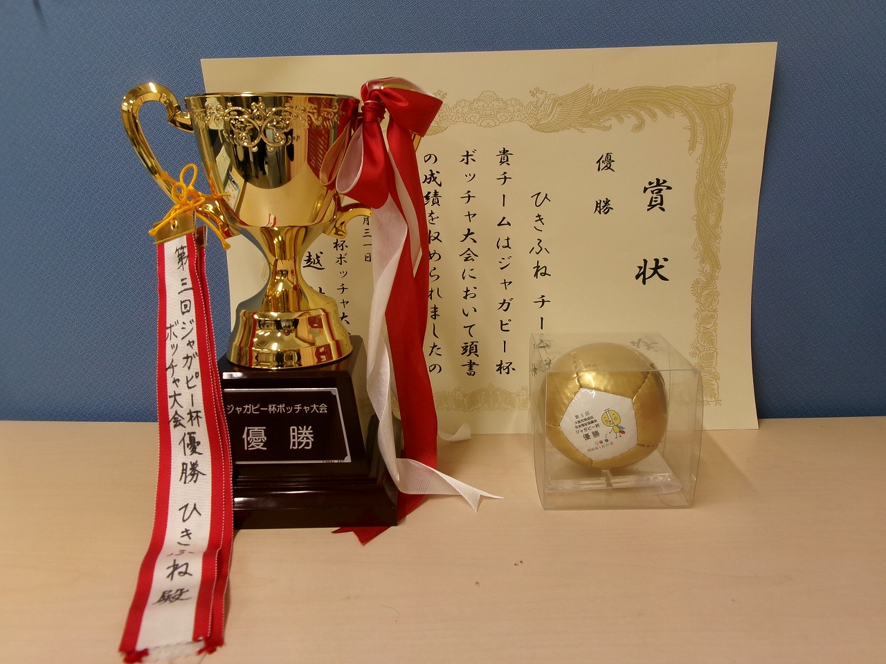 1月14日西成区民センターで行われたボッチャ大会で見事優勝を収めた、ひきふねチーム!