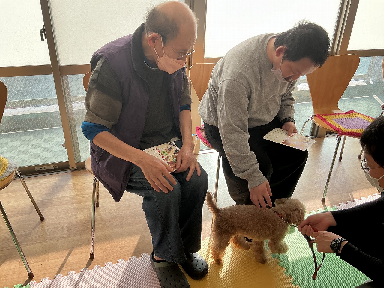 年間行事としてセラピードッグ(トイプードルのみらい、ラブラドールレトリバーのハッピー)がJIKYOに来てくれました。