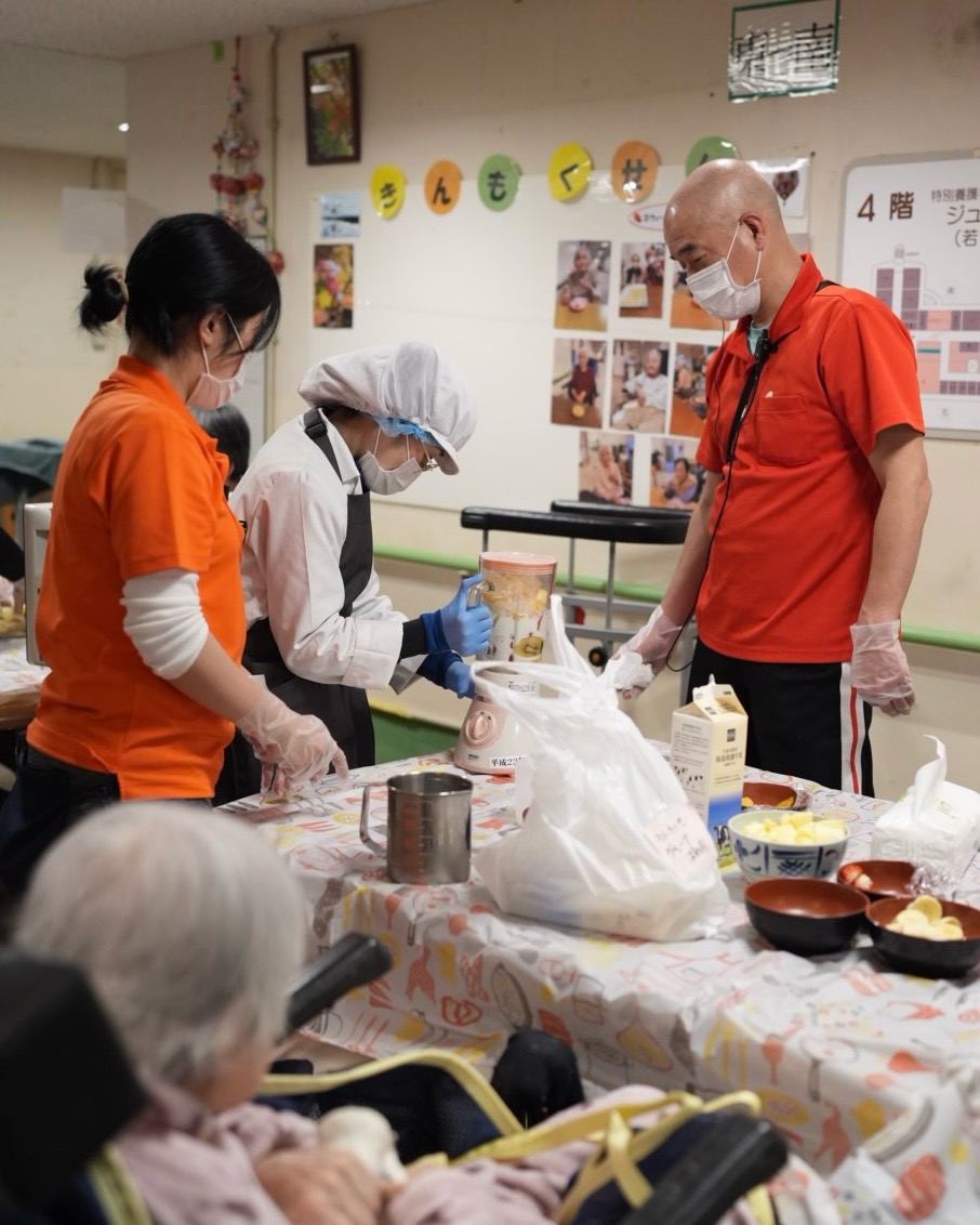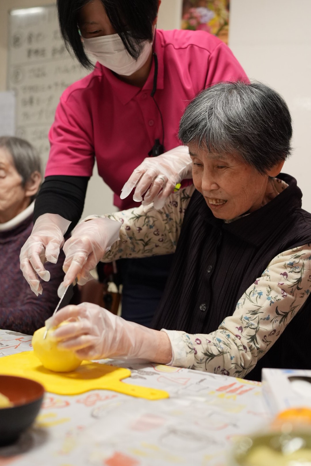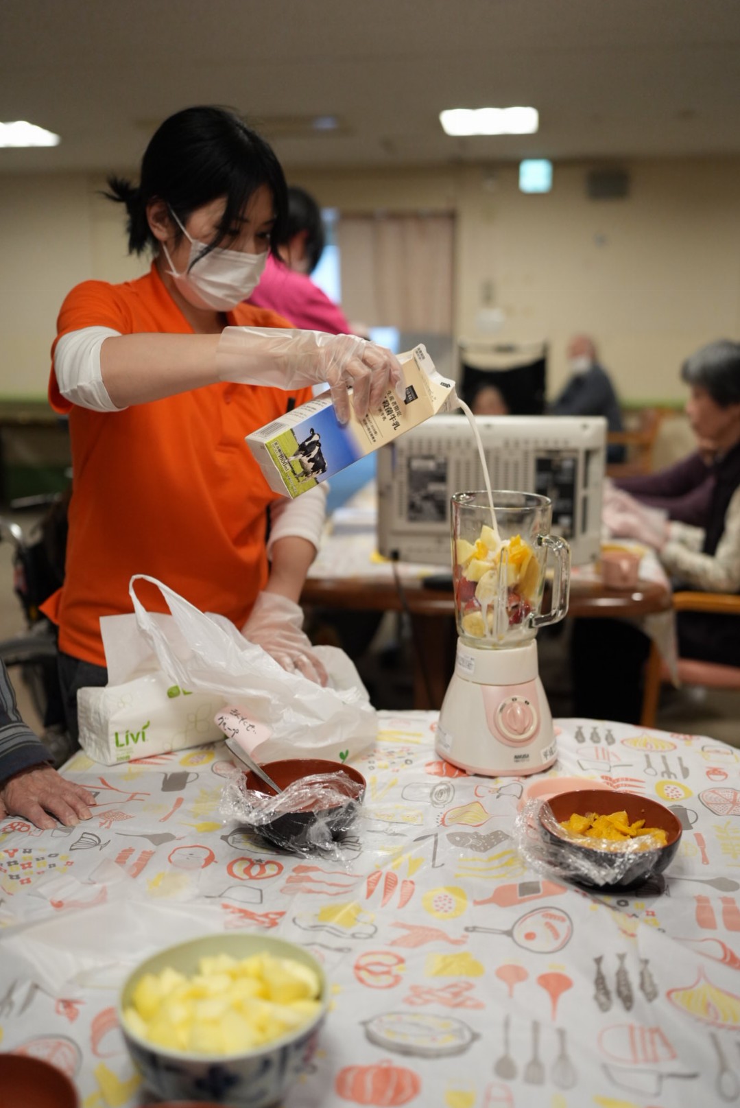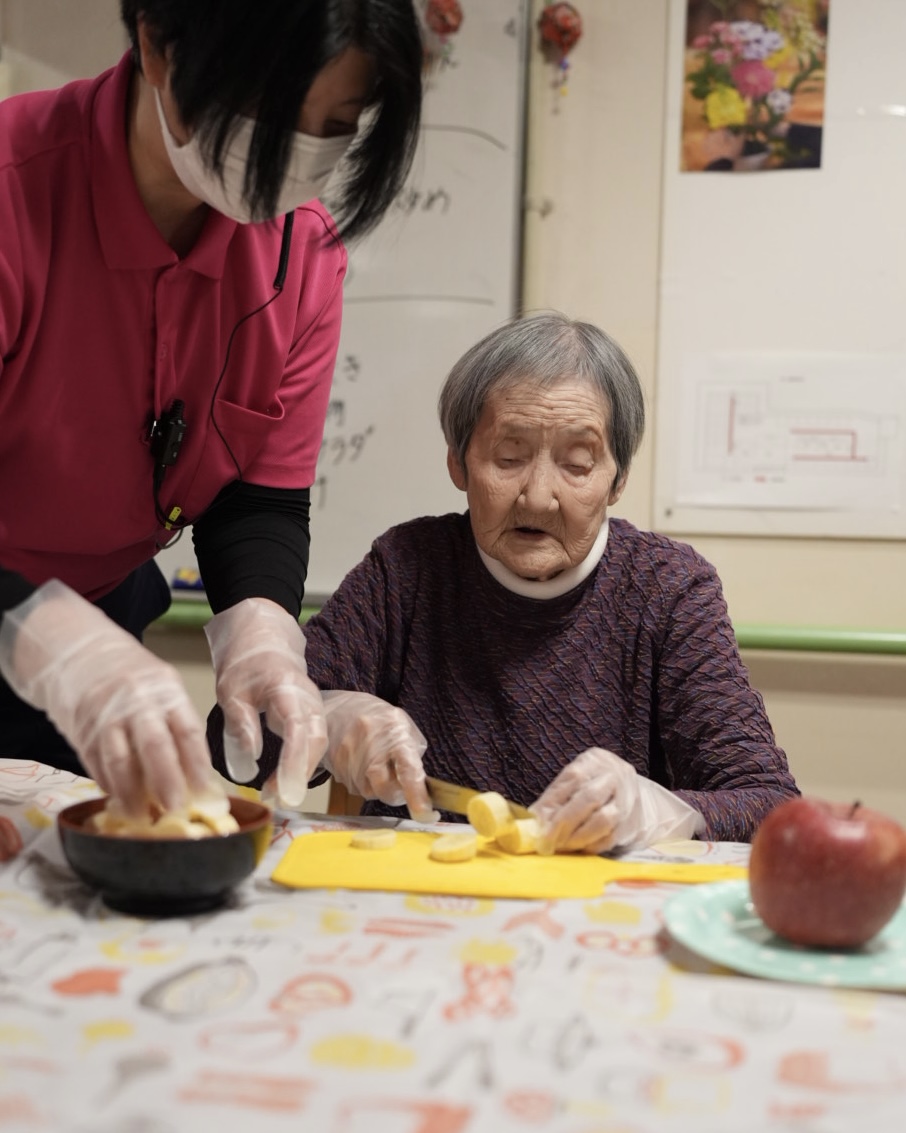 利用者様には果物を切っていただき完成したジュースはゴクゴクと美味しそうに召し上がっていただきました!