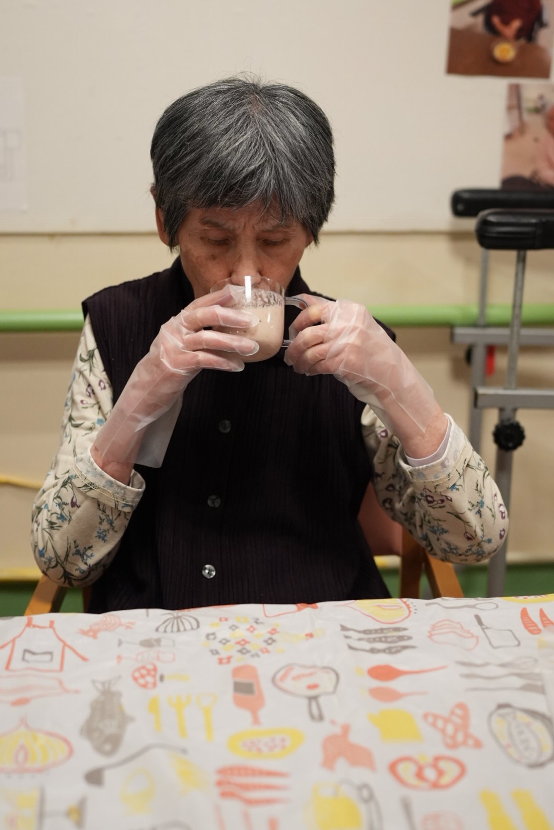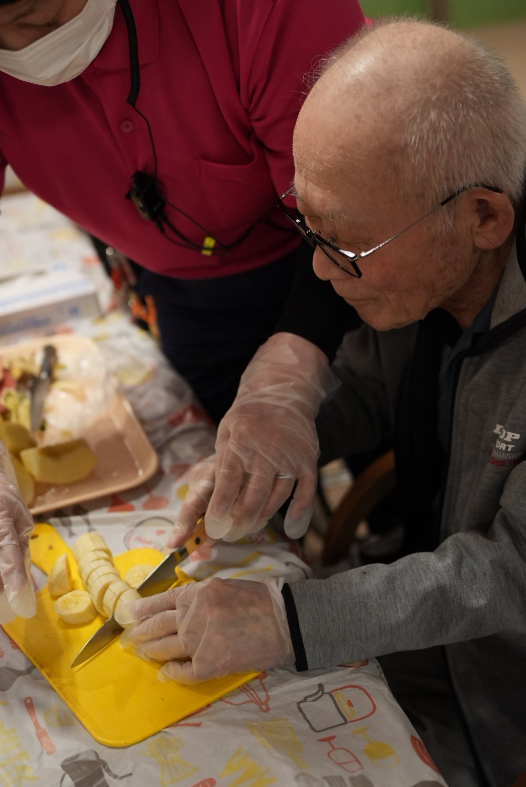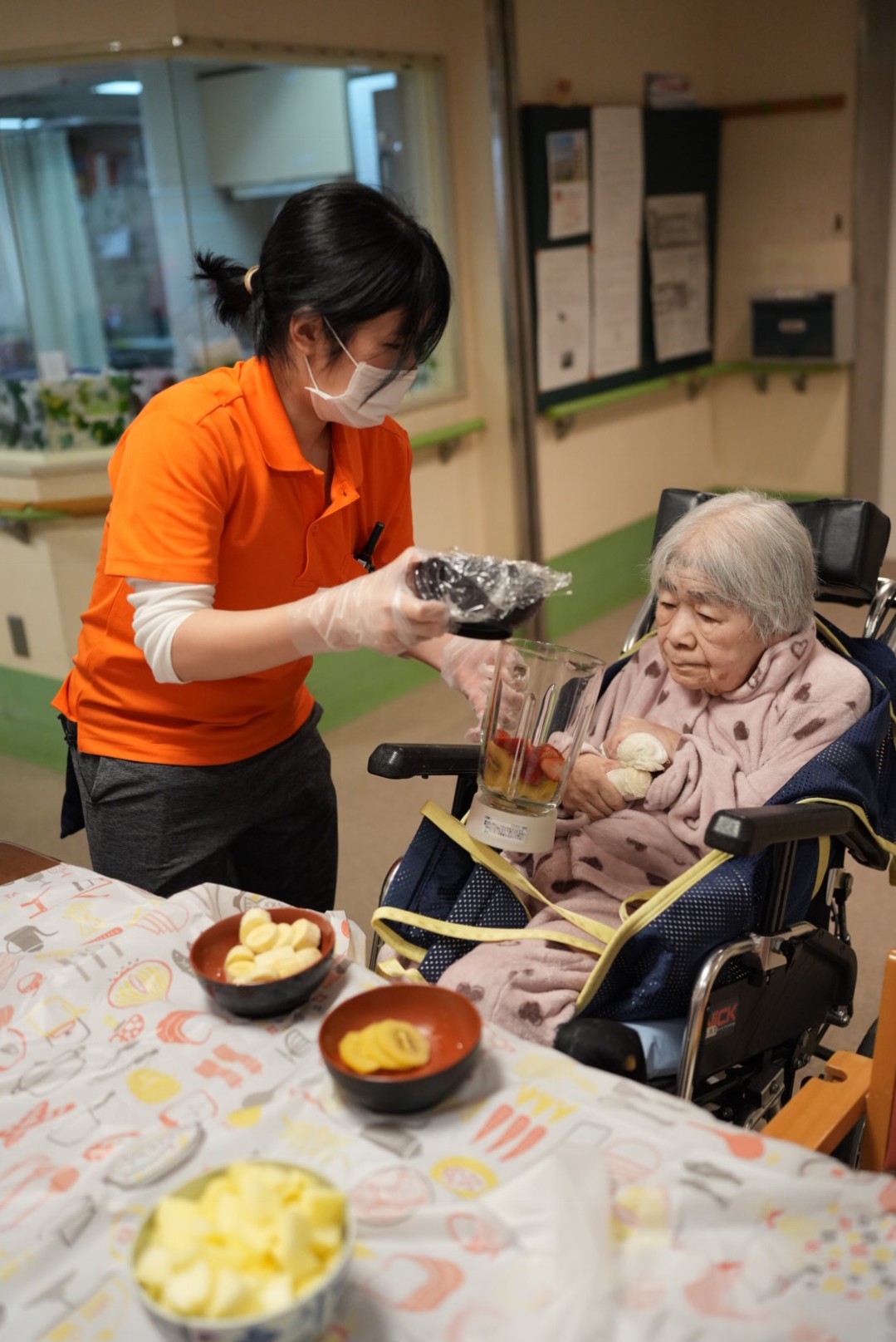 利用者様には果物を切っていただき完成したジュースはゴクゴクと美味しそうに召し上がっていただきました!