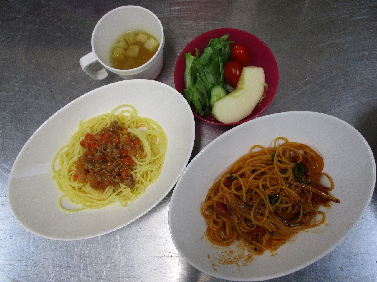 ミートソースとナポリタンの2種類をご用意しました。