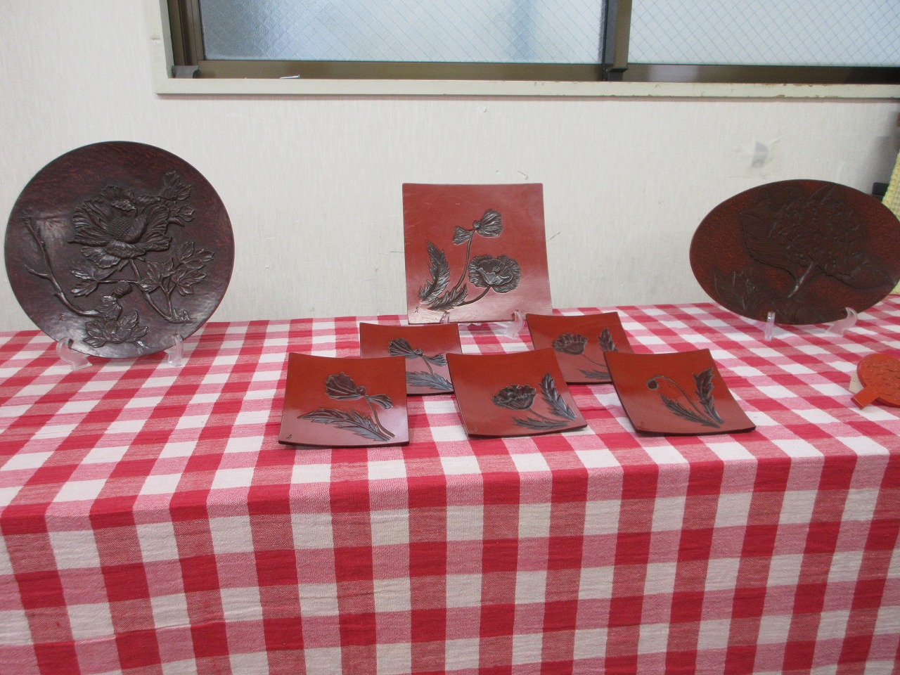 お皿は鎌倉彫で彫刻され、漆を何重にも重ね塗りした作品で、その重厚感が立派な存在感を示していました。
