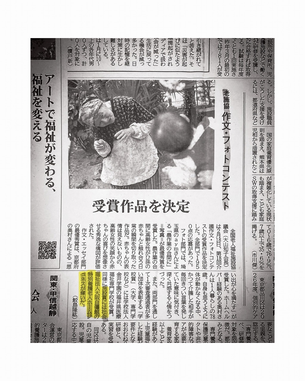 全国老人福祉施設協議会は第18回介護作文・フォトコンテストの受賞作品を決定。