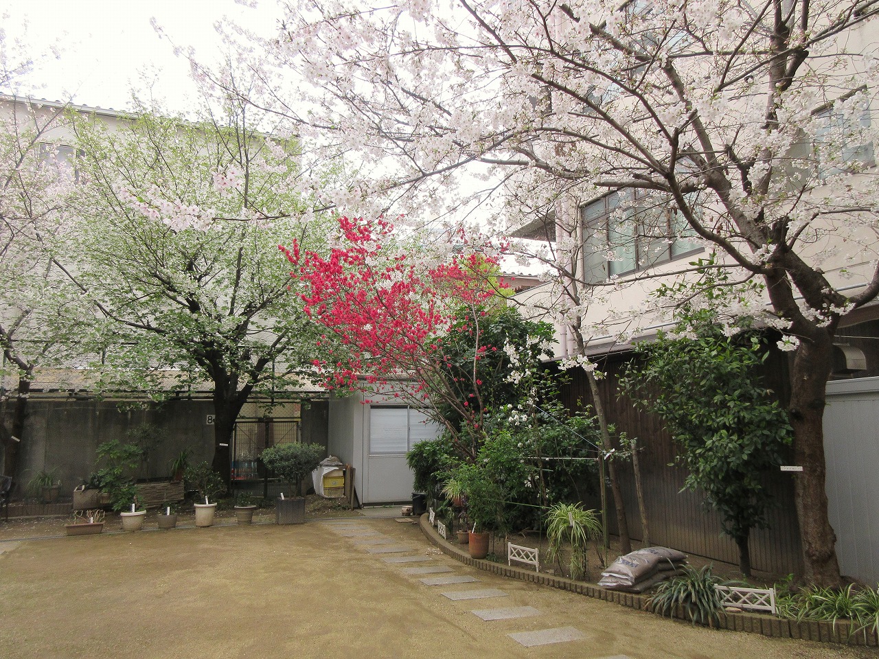 日当たりのよい位置にある桜の木には早くも葉が生えはじめ、初夏を迎える準備をしているかのようです。