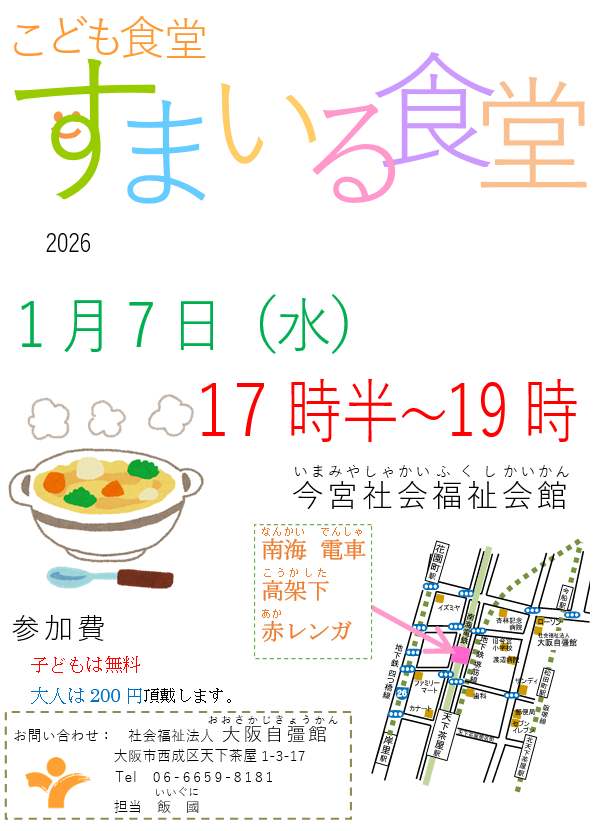 Newsすまいる食堂1月7日(水)行います!