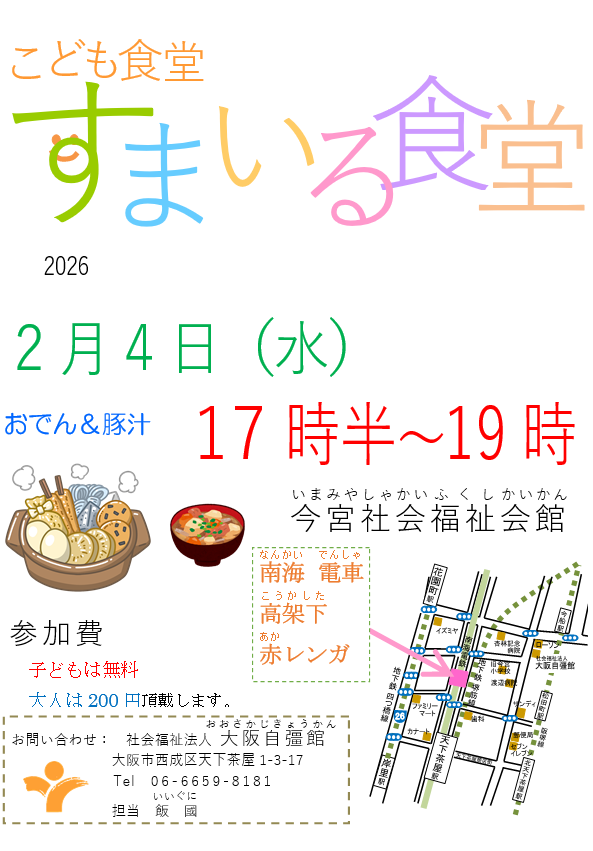 社会福祉法人大阪自彊館大阪市西成区天下茶屋1-3-17 担当:「難波」まで