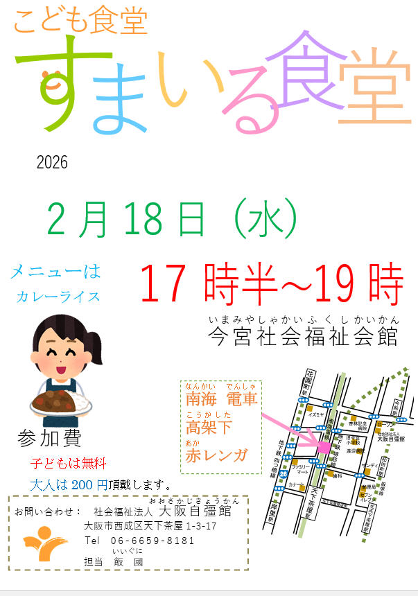 社会福祉法人大阪自彊館大阪市西成区天下茶屋1-3-17 担当:「難波」まで