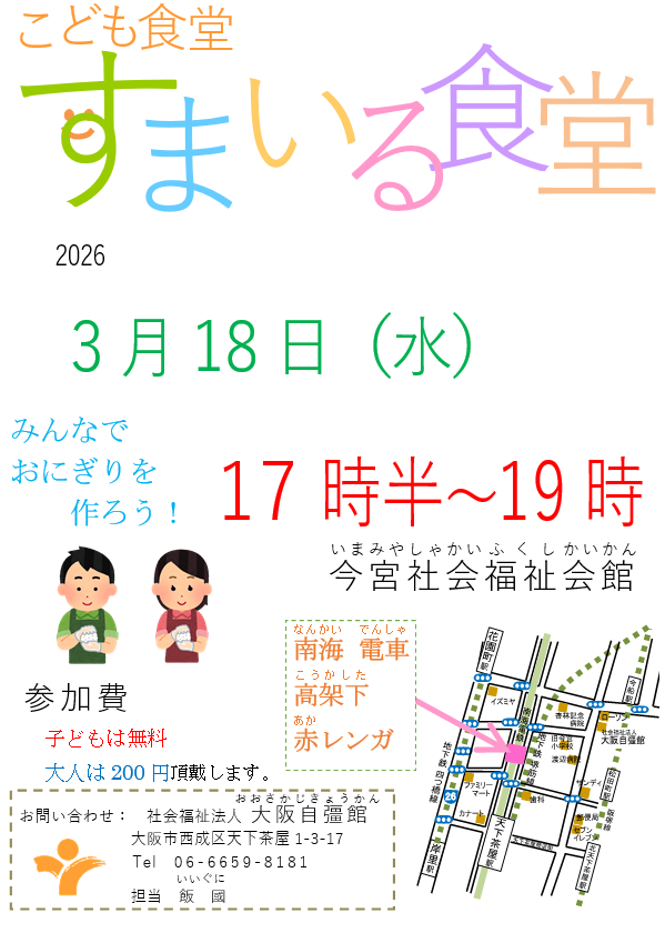 社会福祉法人大阪自彊館大阪市西成区天下茶屋1-3-17 担当:「難波」まで